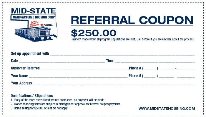 2. Once the appointment is set, the new customer must bring the completed coupon to the appointment to pick out a home.